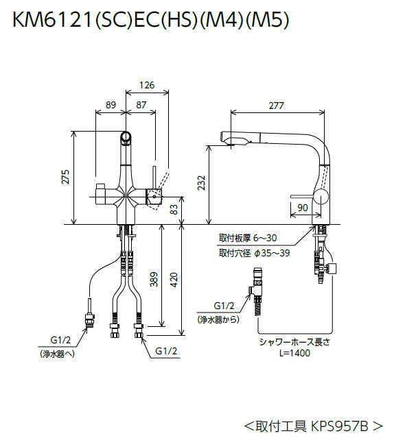KVK ビルトイン浄水器用シングルシャワー付混合栓(eレバー) KM6121SCEC【別送品】