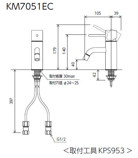 KVK シングル混合栓(eレバー) KM7051EC【別送品】