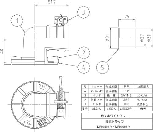 旧品MB44KL・MB44KLY用です。他の排水トラップには使用できませんので、ご注意ください。