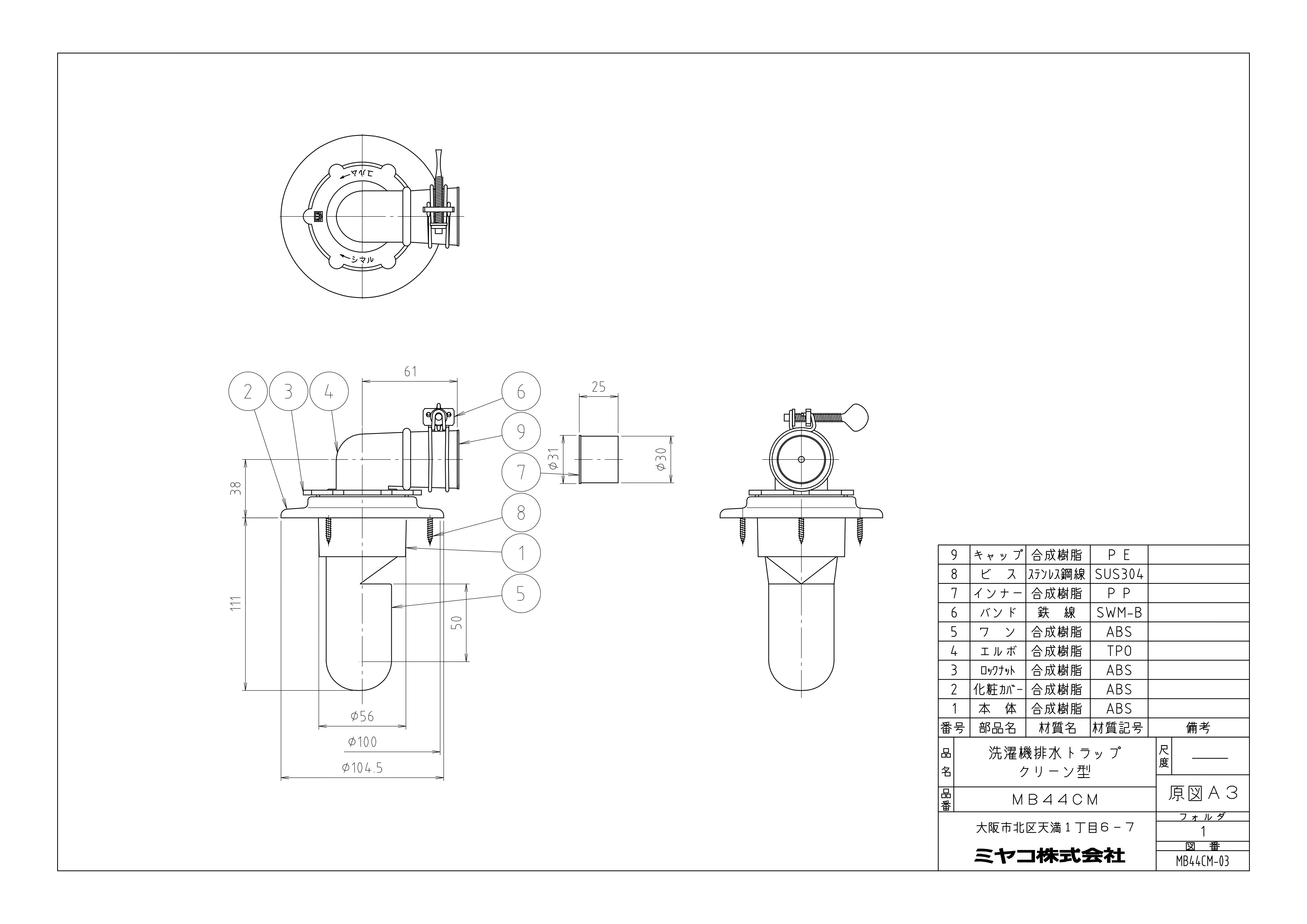 ミヤコ クリーン型洗濯機排水トラップ 寸法50mm MB44C 4909730332695