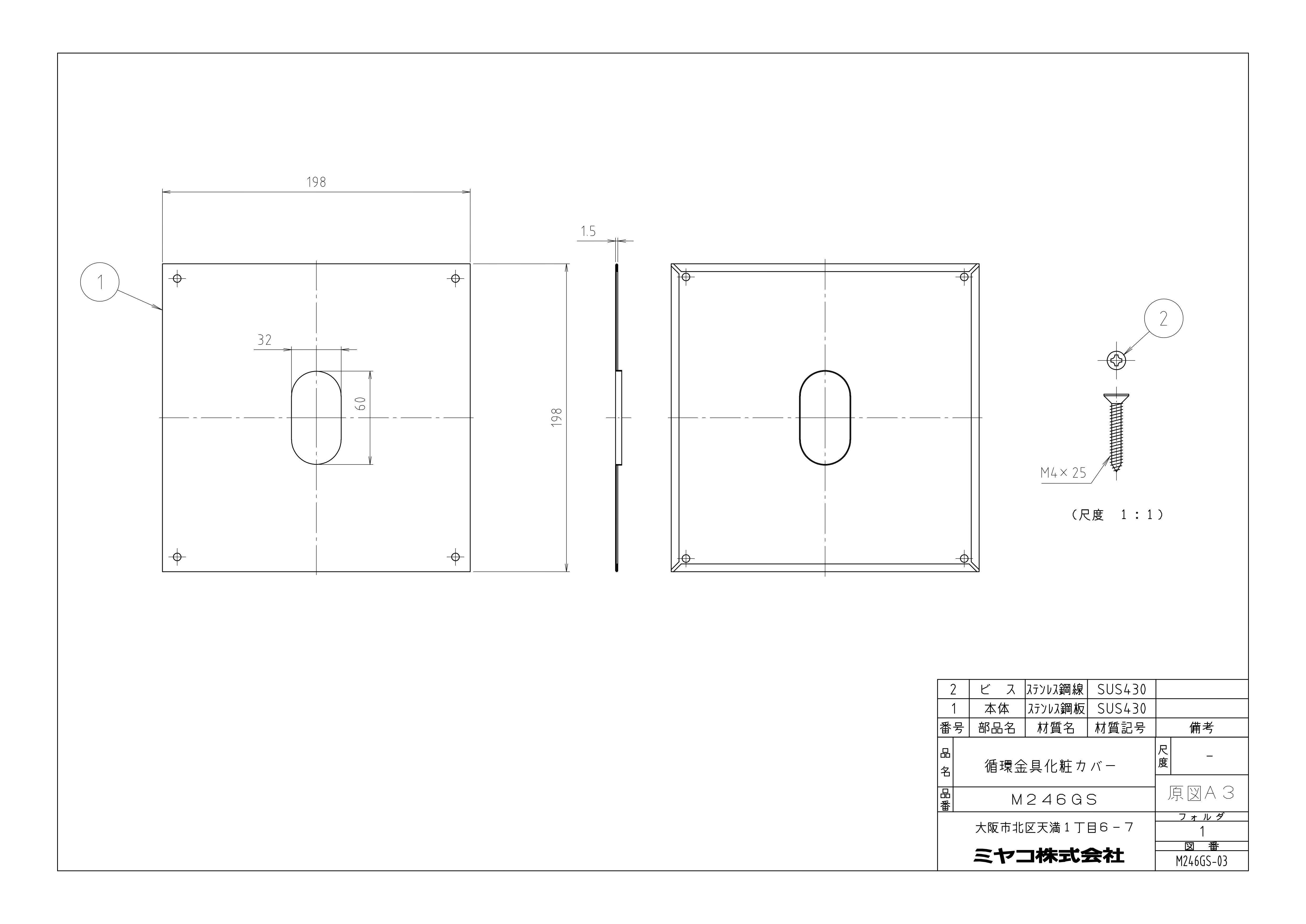 ミヤコ 循環口化粧カバー 寸法200×200mm M246GS 4909730332855