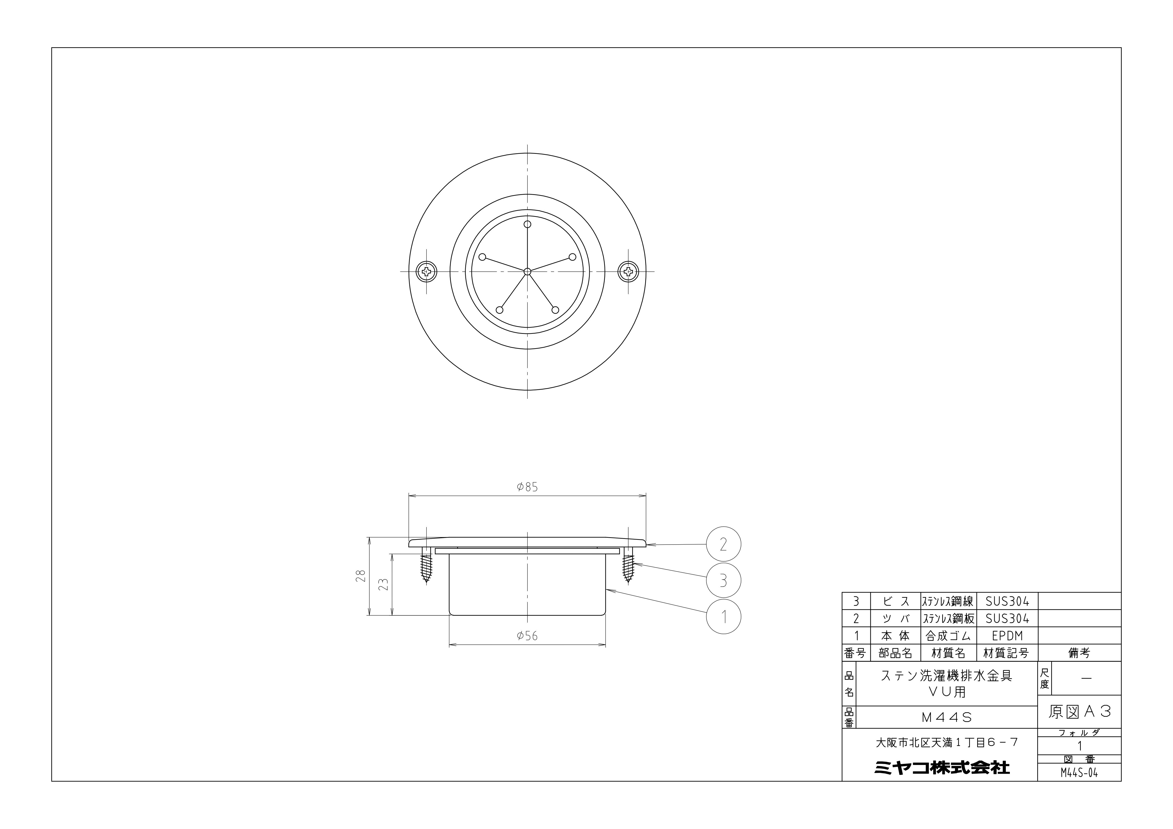 ミヤコ ステンレスMT式洗濯機排水金具 寸法50mm M44S-50 4909730332947