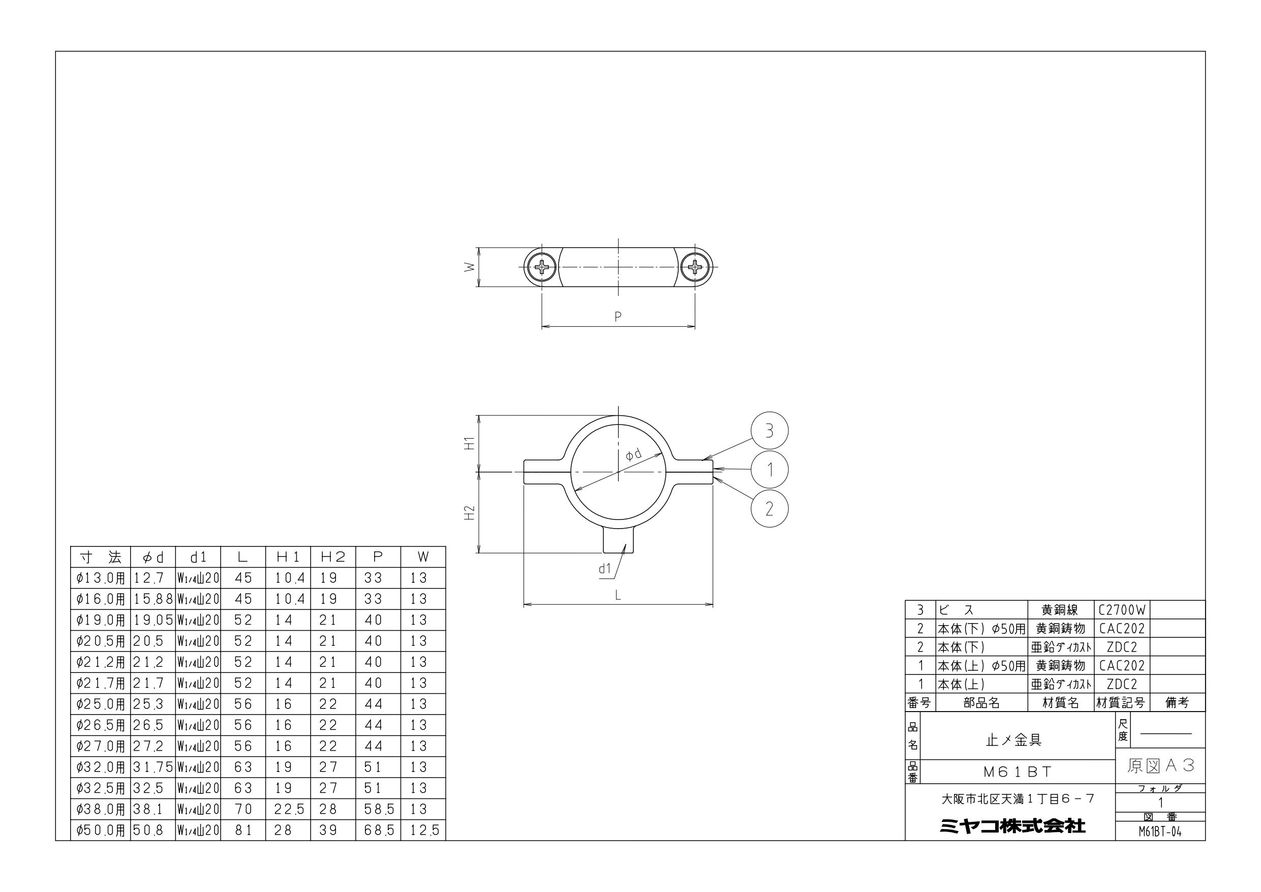 ミヤコ 洗浄管支持金具(頭) 寸法φ20.5 M61BT-20.5 4909730333067