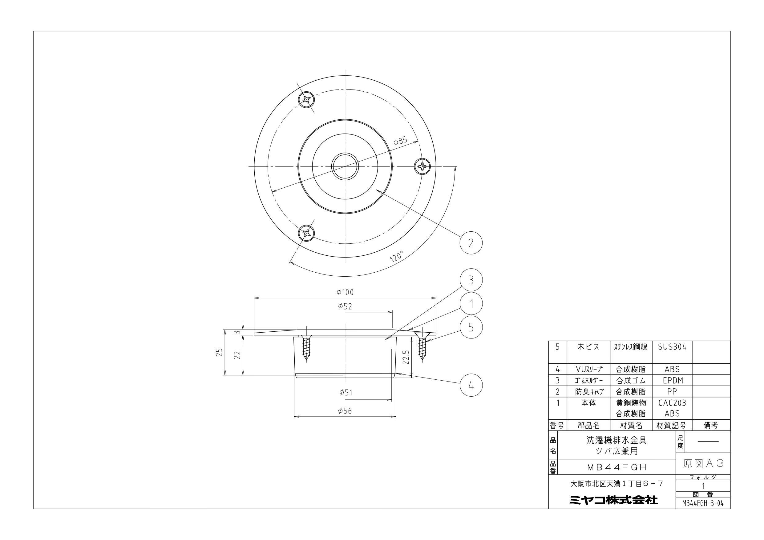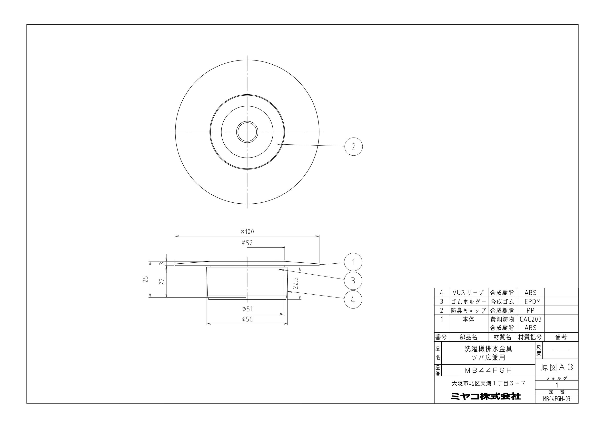 ミヤコ 洗濯機排水金具ツバ広_兼用 寸法φ100×25mm MB44FGH-50 4909730333180