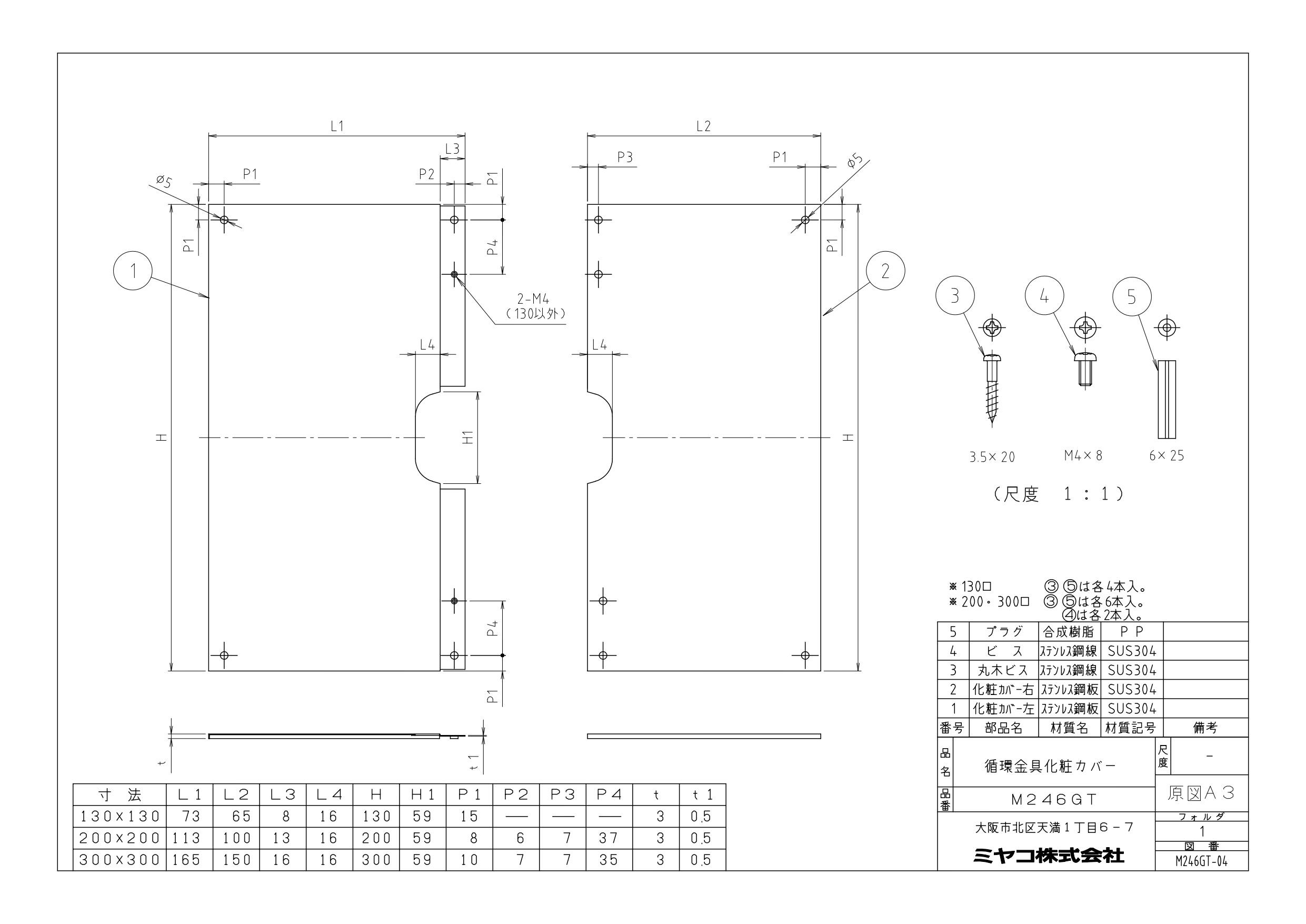 ミヤコ バス用循環化粧カバー 寸法200×200mm M246GT-200 4909730333845