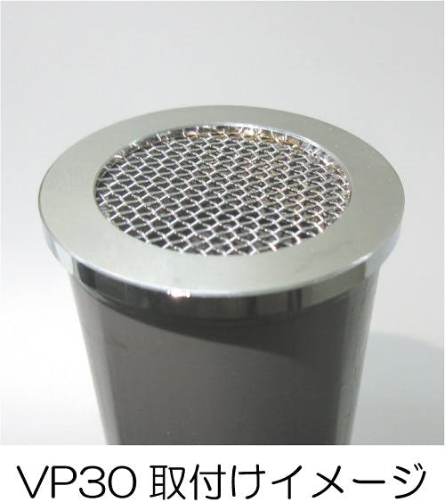高架水槽・受水槽のオーバーフロー管の管末や排水管通気(汚水管通気)、配管開口部に取り付け、ゴミや虫の侵入を防止する金具です。VP管用の防虫目皿です。