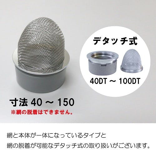高架水槽・受水槽のオーバーフロー管の管末や排水管通気(汚水管通気)、配管開口部に取り付け、ゴミや虫の侵入を防止する金具です。山型防虫目皿で異物がすべり易く網につきにくくなっています。また、通気面積が通常の防虫目皿より大きくなります。