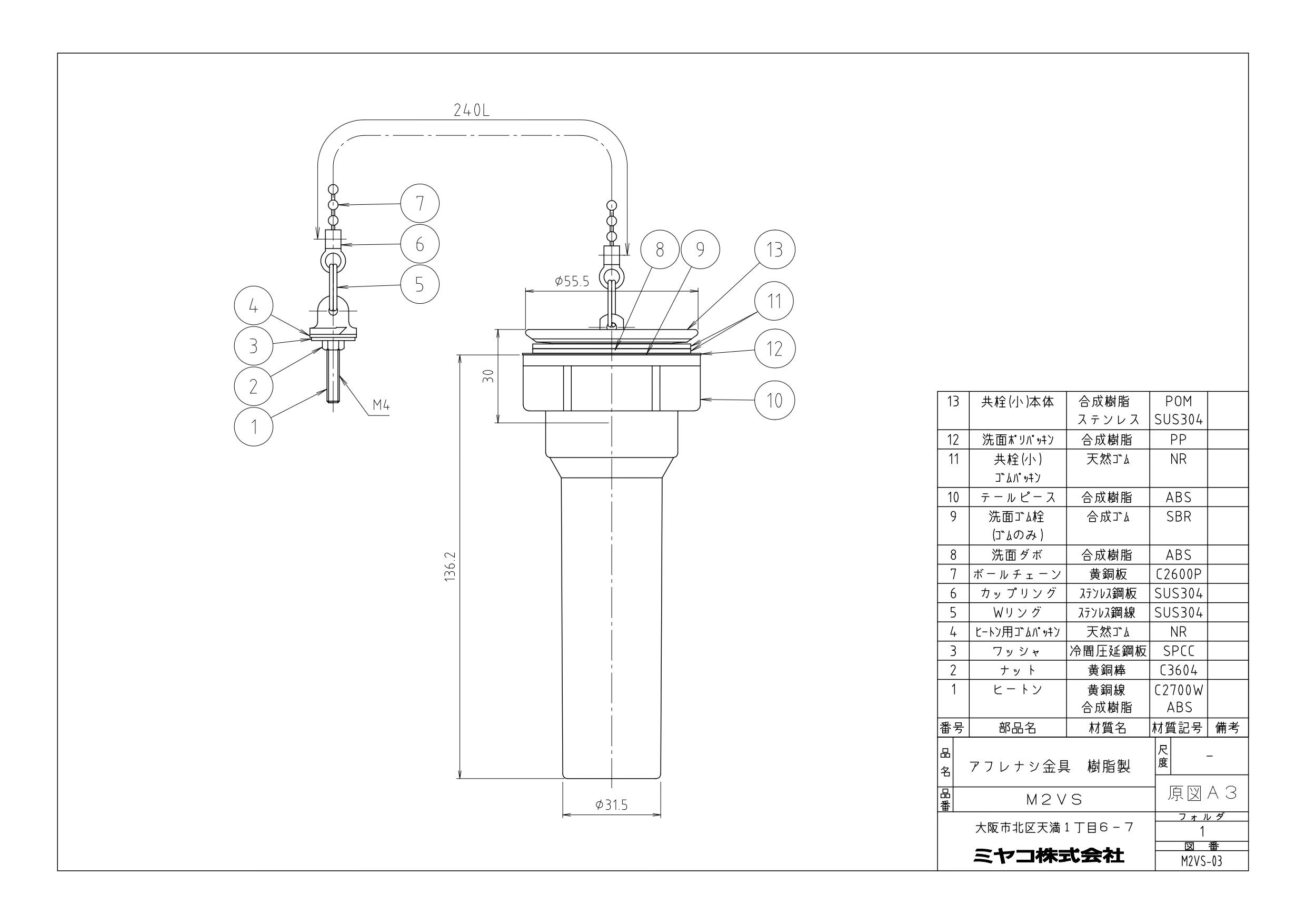 Sトラップ(ビニール)用のアフレナシ金具部品です。ホーロー用排水栓(M6VANS、M6VN用)。