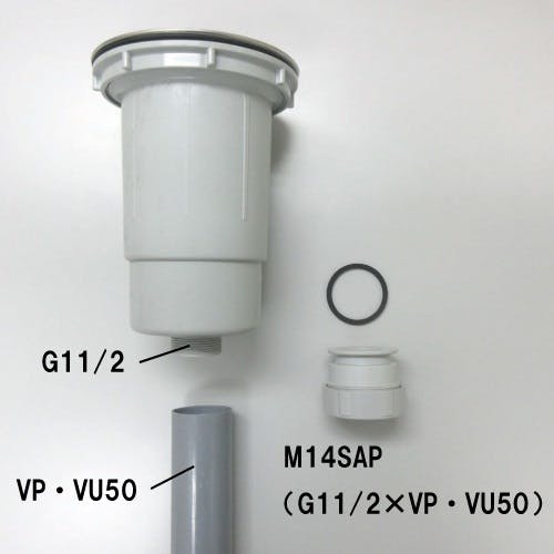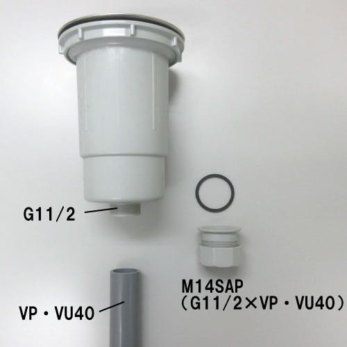 M14S(W)、M14J(W)、M14L(W)、M14SBK(W)に使用できます。G11/2×VP・VU40は40Aの流し台トラップをVP・VU40に接続したい場合に使用します。G11/2×VP・VU50は40Aの流し台トラップをVP・VU50に接続したい場合に使用します。G2×VP・VU50は50Aの流し台トラップをVP・VU50に接続したい場合に使用します。