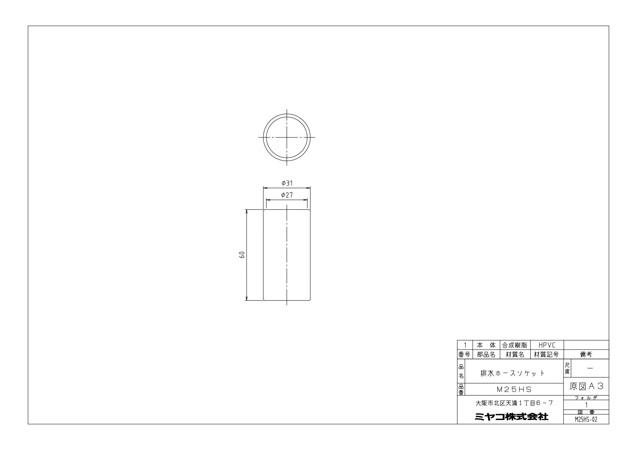 ミヤコ 排水ホース継手 寸法φ31×60mm M25HS 4909730403944