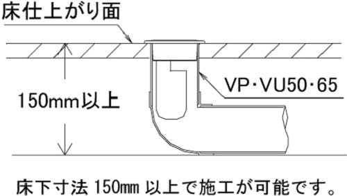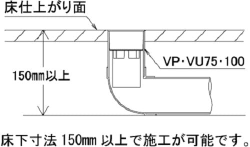 2重トラップにならないように配管してください。逆勾配にならないよう施工してください。VP、VU50・75・101用です