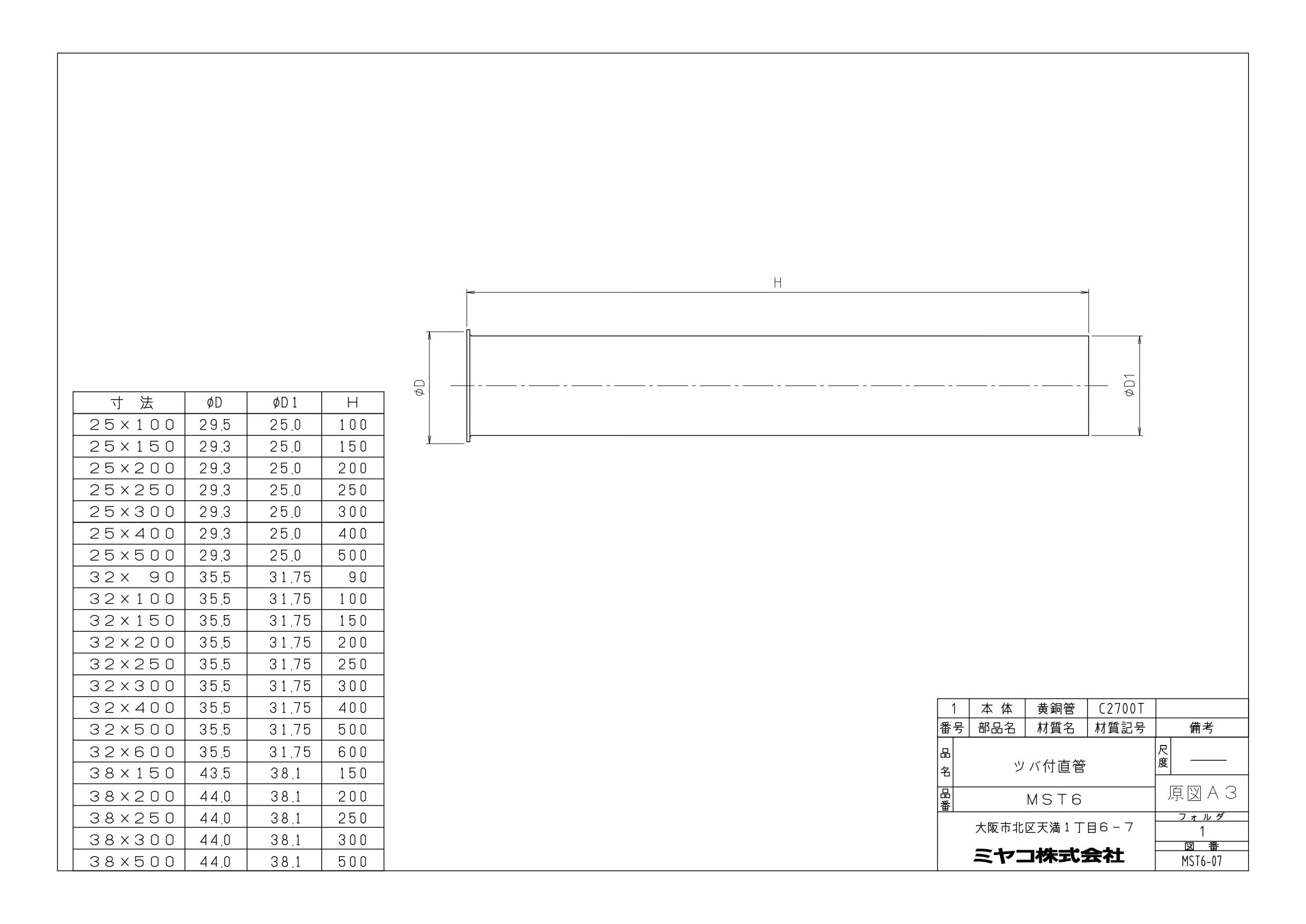 ミヤコ ツバ付直管 寸法32×300mm MST6-32 4909730801139