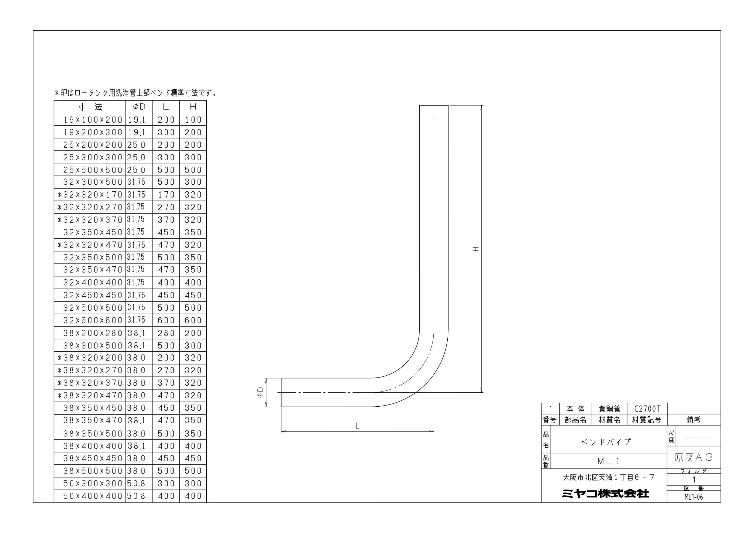 ミヤコ ベンドパイプ38 寸法32mm×320mm×170mm ML-1-2(38)4909730801436