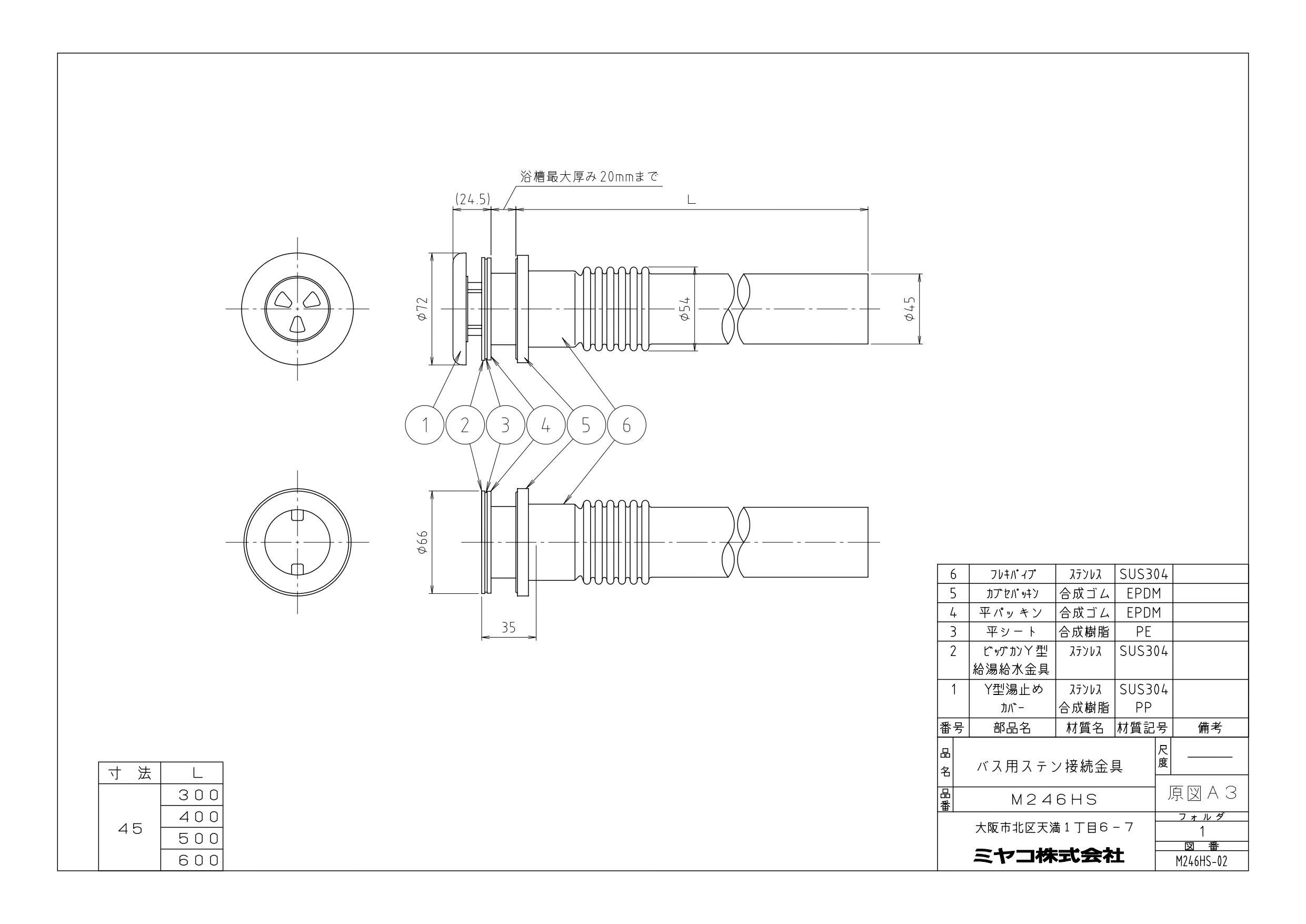 ミヤコ バス用ステン接続 寸法45×300mm M246HS-300 4909730801795