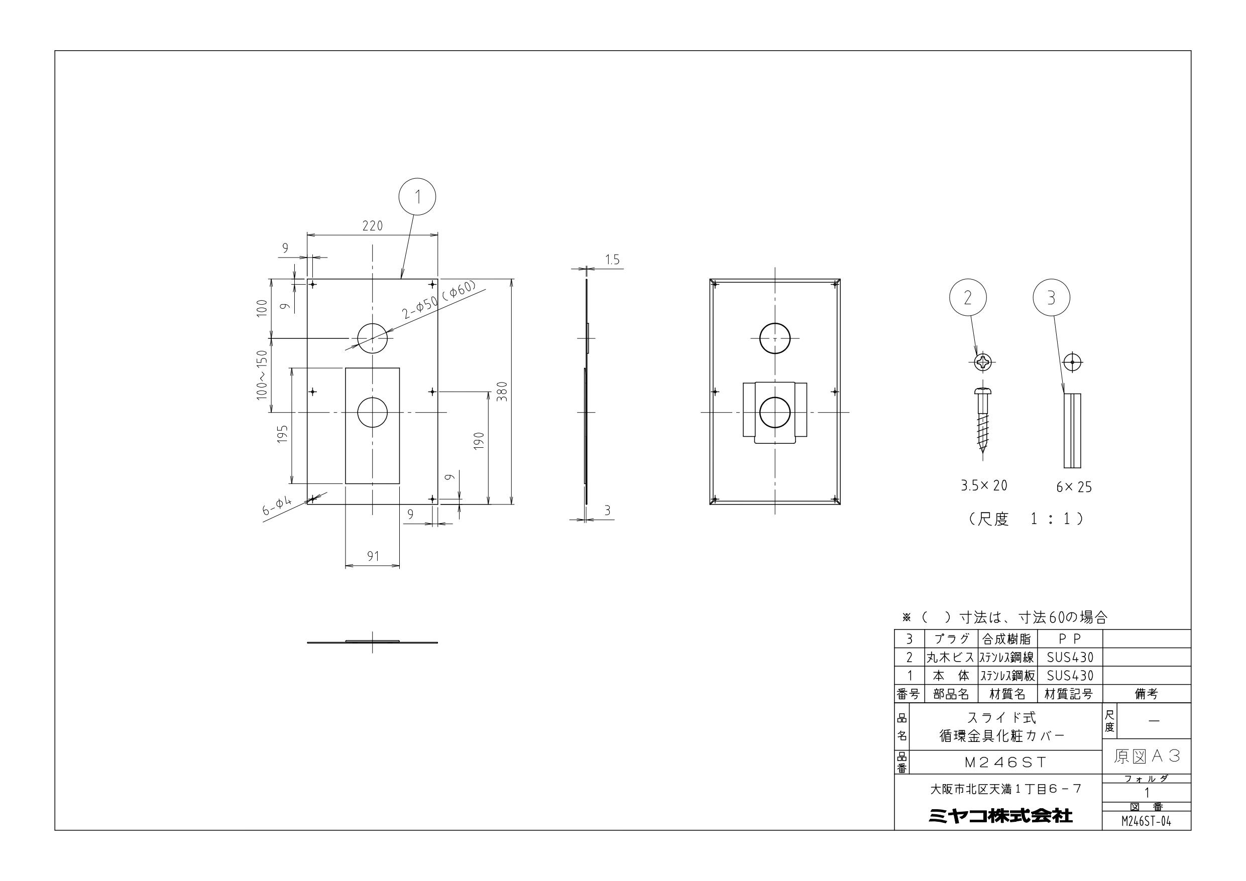 ミヤコ バス用スライド化粧カバー 寸法380mm×220mm M246ST 4909730801894