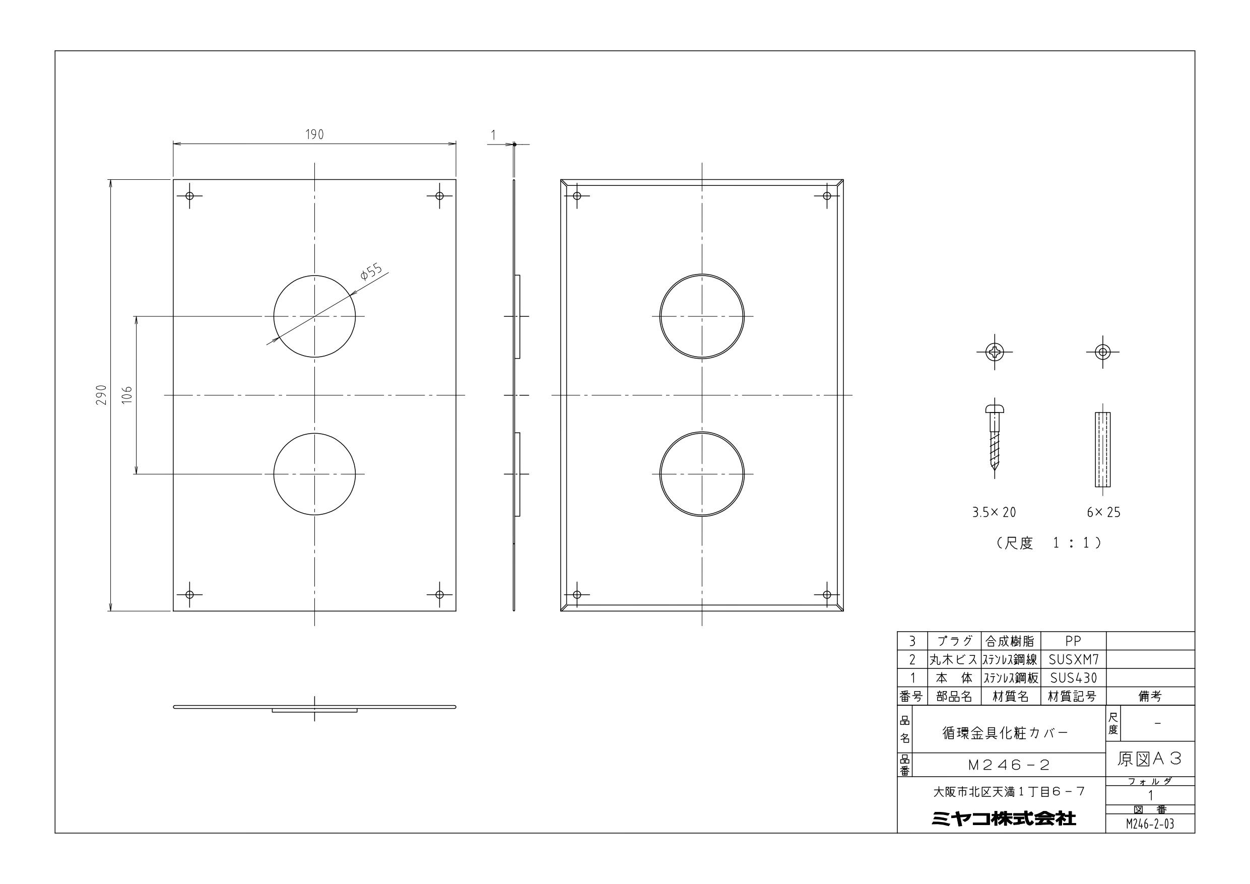 ミヤコ 循環口化粧カバー 寸法290mm×190mm M246-2 4909730803195