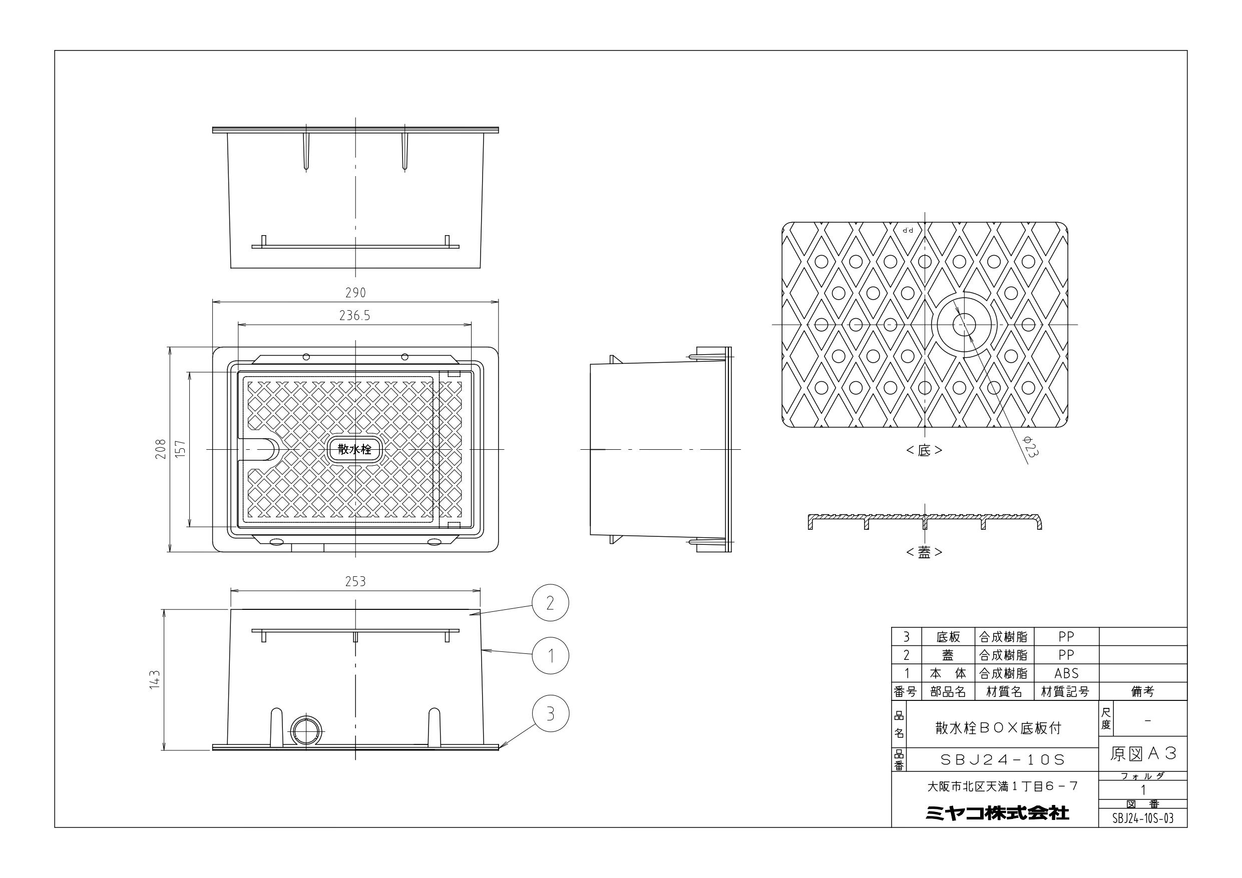 ミヤコ 散水栓BOX 蓋青 SBJ24-10S 寸法208mm×290mm×143mm 蓋青 4909730820581