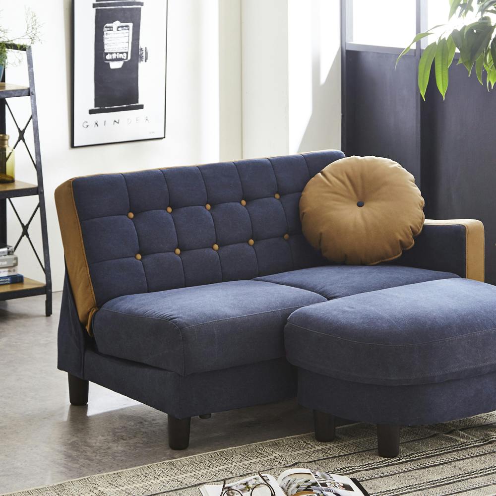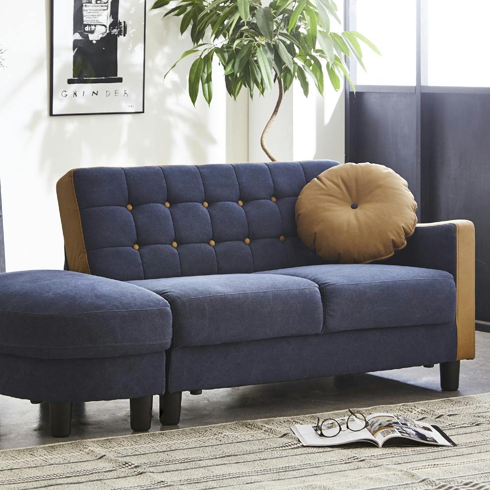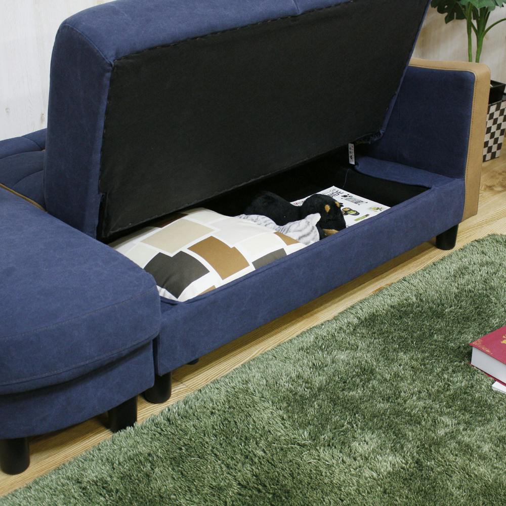 後藤家具物産 座面下には大容量の収納庫付コンパクトカウチソファー サリーDX/ネイビー色 Size:110×72×68 軒先渡し 4571501390359 【別送品】