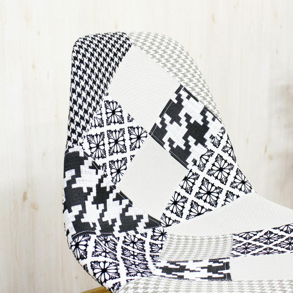 ●個性の光るパッチワークシェルチェアー。●定番のイームズチェアー「DSW」のファブリックタイプ。●お部屋に置くだけでのオシャレになる存在感のあるアイテム。●座面高:46cm。●カラー:モノトーン色。●生産国:中国。