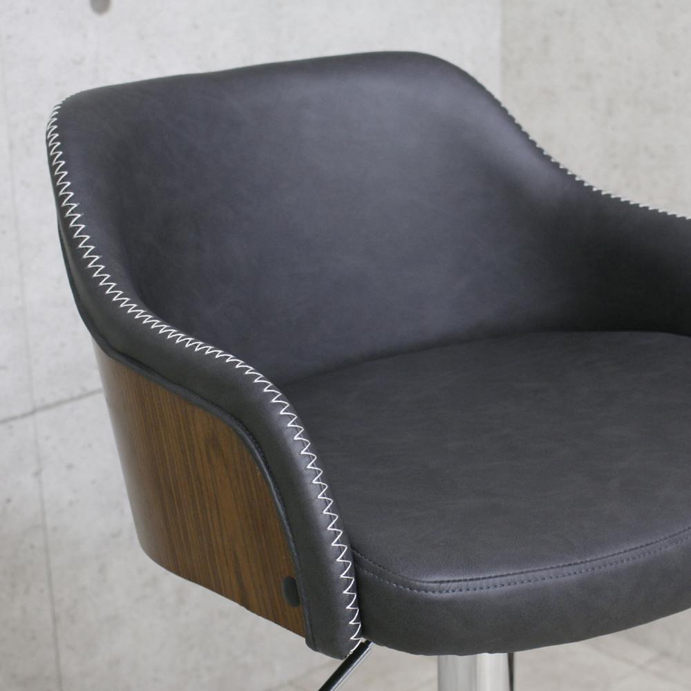 ●自宅でカフェ気分が味わえるカウンターチェアー。●木部はウォールナット突板を採用。●ミッドセンチュリー期を彷彿とさせる背と座お丸みが特徴的なデザインカウンターチェアー。●座面はガス圧式昇降で上げ下げも楽々。●座面高:63-83cm。●カラー:グレー色。●生産国:中国。