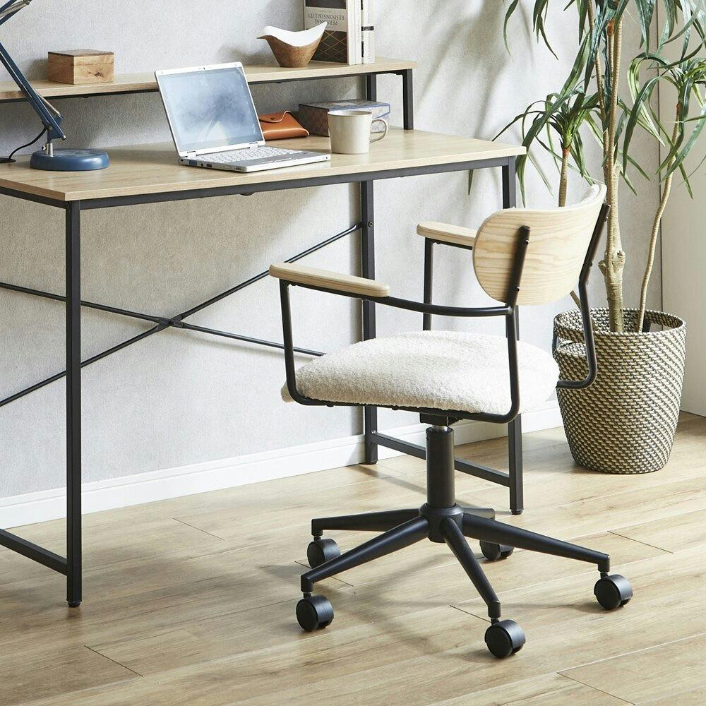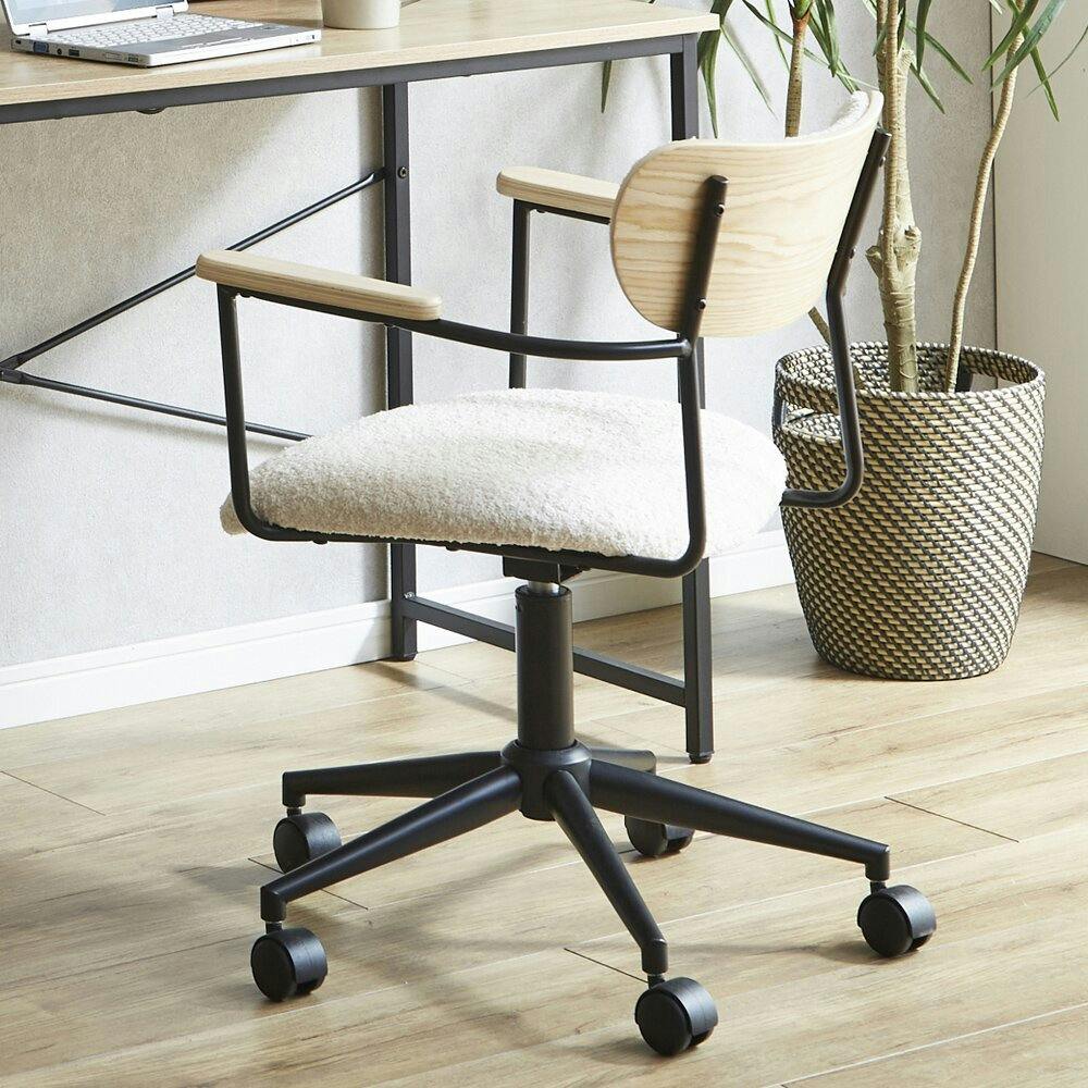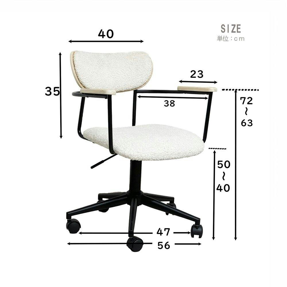 ●木部はオーク突板を使用したナチュラルでモダンなワークチェアー。●座面はガス圧昇降式でお好みの高さへ調整可能。座面は360°スムーズに回転しますので、壁際などスペースの限られた場所でも立ち座りのしやすい、快適設計。●カラー:アイボリー色。