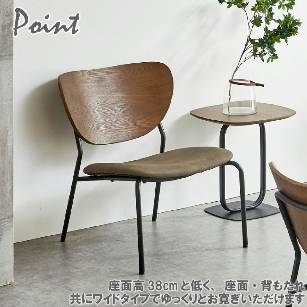 ●シンプルかつモダンなフォルムのラウンジチェアー。●木部は、木目のキレイなアッシュ突板を採用。●座面高は38cmとロータイプ、座面幅が56cmありゆったりとお寛ぎいただけます。●2脚入り。●ブラウン色。