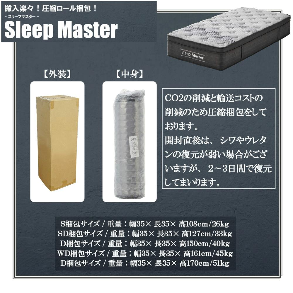 後藤家具物産 スリープマスター WDサイズ圧縮ロールマットレス ワイドダブルサイズ 厚み31cm 1500×1950×310 ポケットコイル ベットマットレス スプリングマット エッジサポート PIM-SM-WD【別送品】