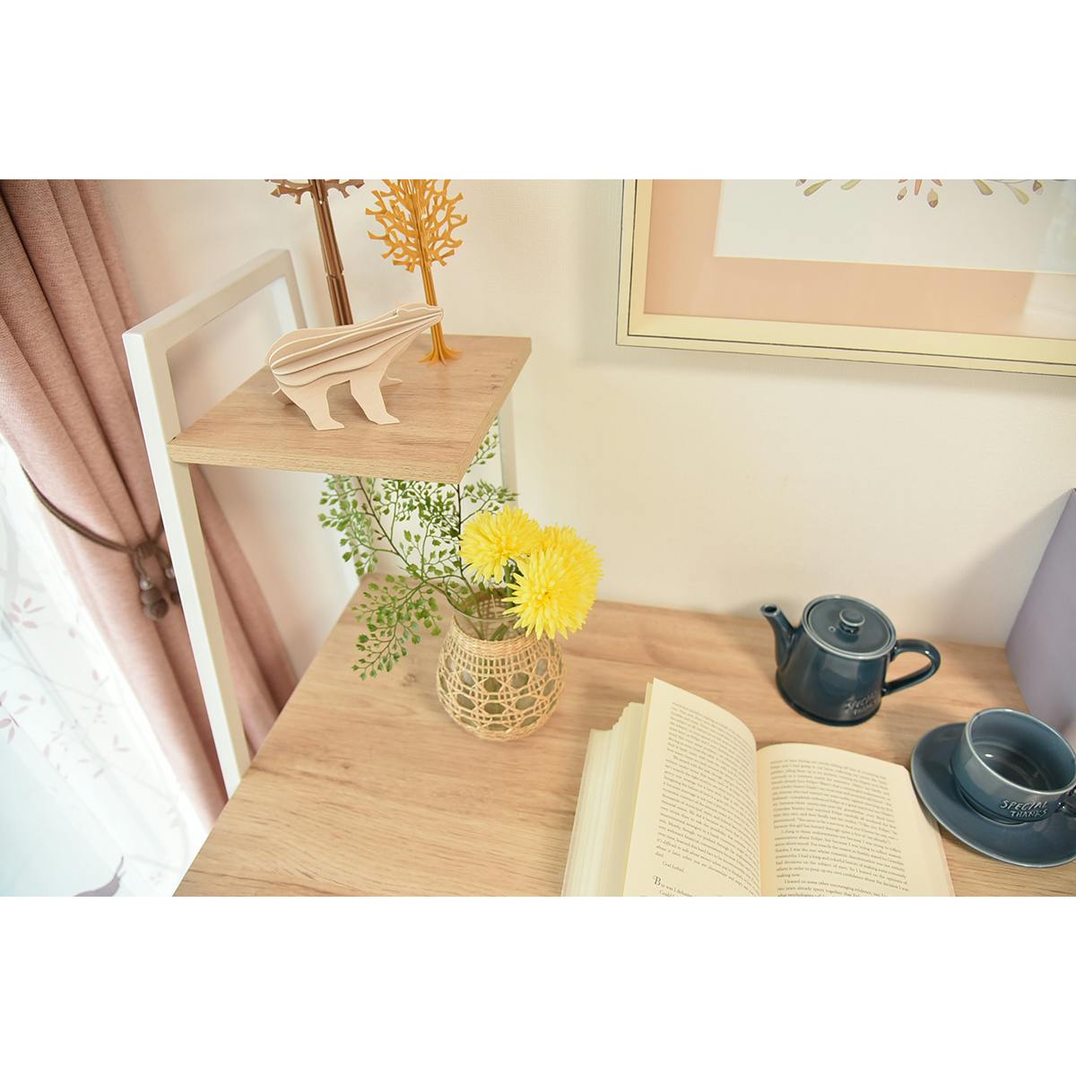アイアンと木材を組み合わせ、モダンなデザインに仕上げました。傷に強いメラミン仕様の棚板で、スタイリッシュでお部屋に合わせやすいデスク。