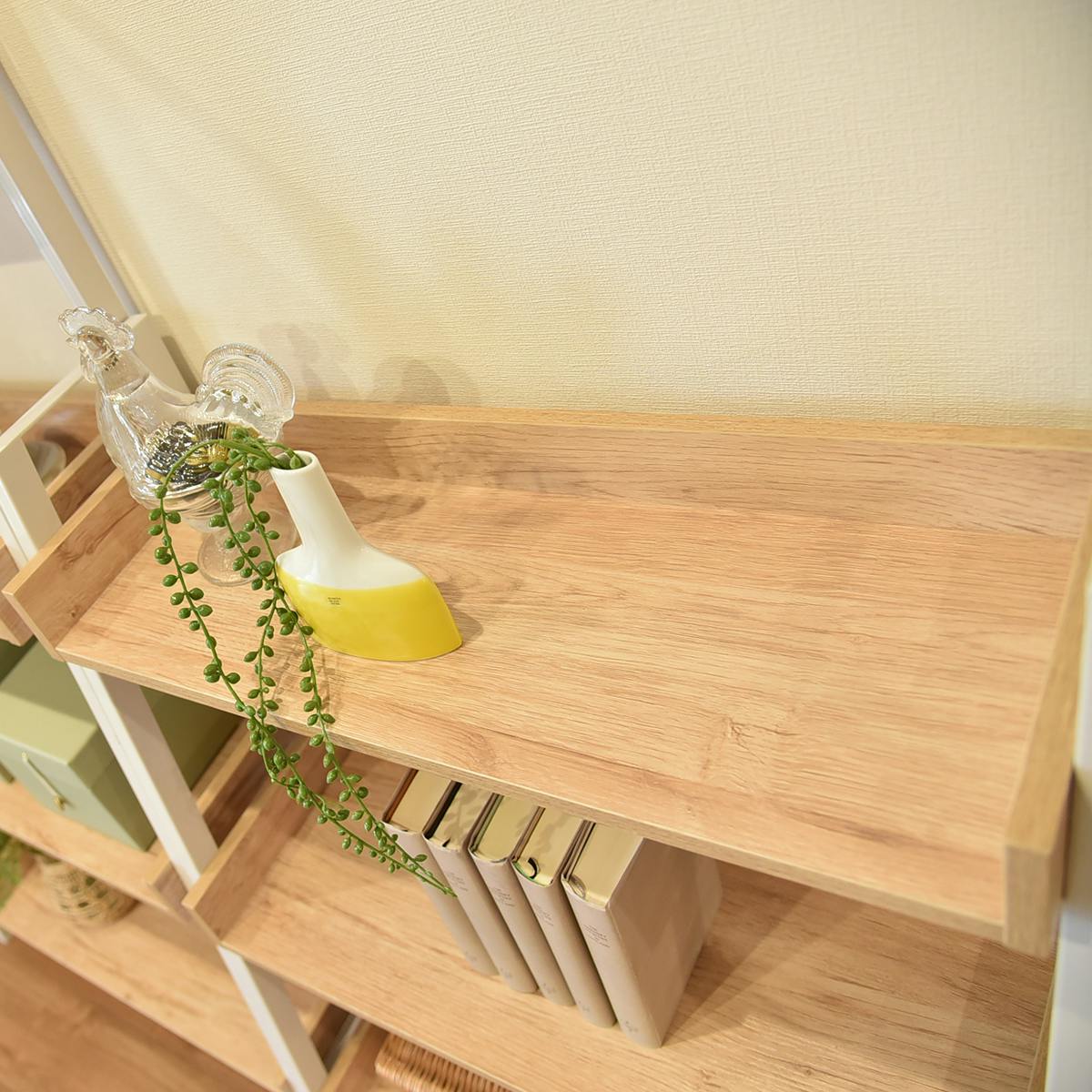 ディスプレイラックとしてもお使い頂けます。キズ、汚れなどに強いメラミンシートを使用。背面、側面にあるボードが収納物の落下や転倒を防ぎます。