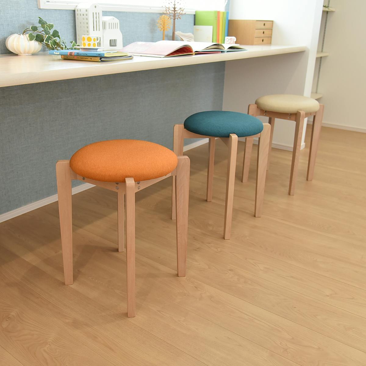 きれいなビーチ材の木目が特徴のスタッキングスツール。限られたスペースを活用できるシンプルなデザイン。