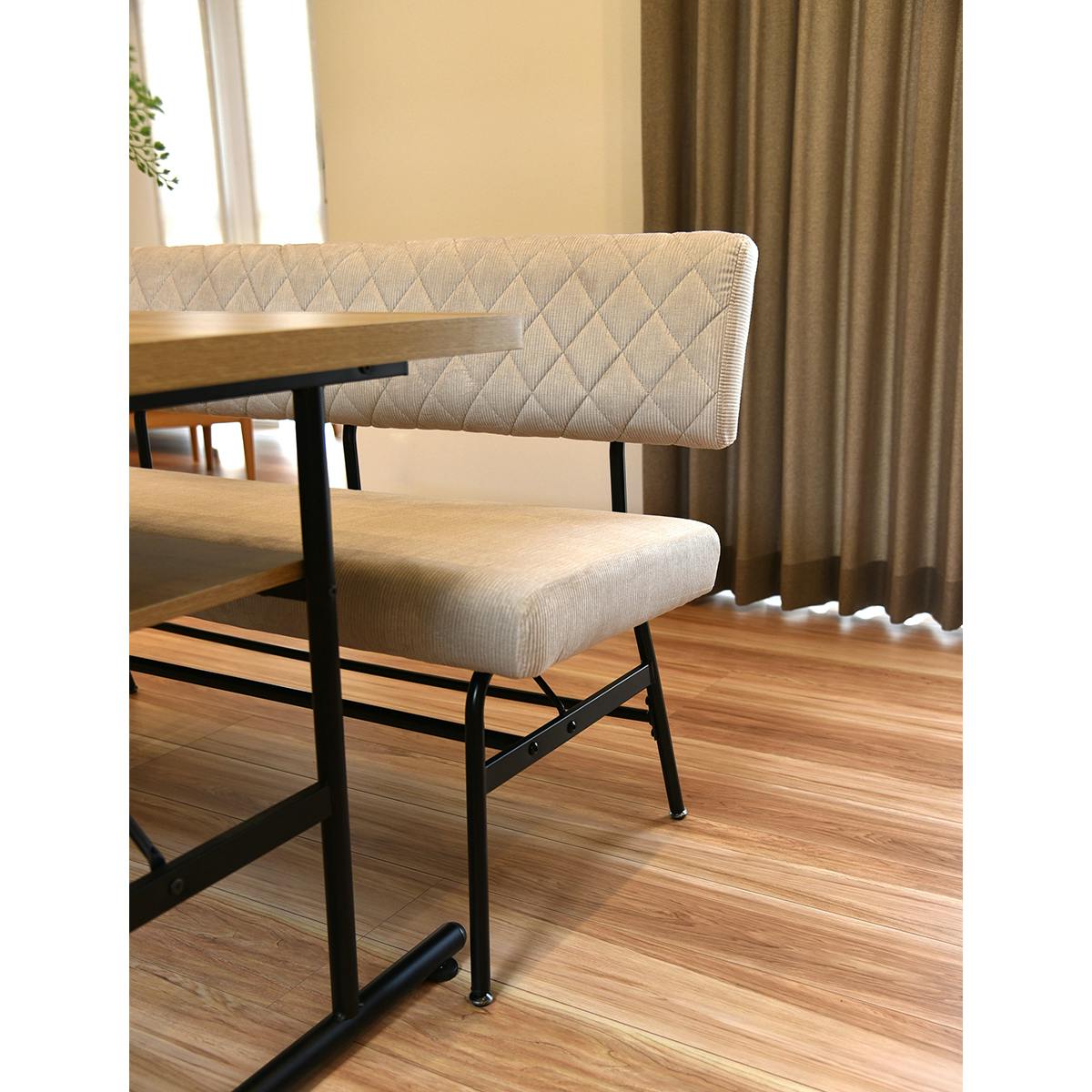 肘部は周りに併せ、左右選択して取付けできます。コーデュロイ生地を使った肌触りの良い広々座面と背もたれスタイリッシュ&シャープなパイプフレーム