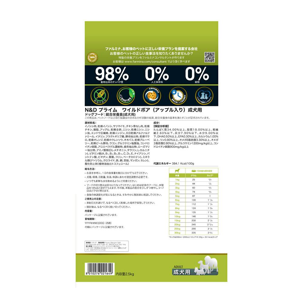 N&D プライム ワイルドボア アップル 成犬用 2.5kg