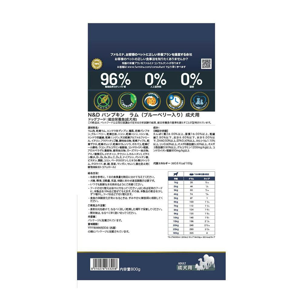N&D パンプキン ラム ブルーベリー 成犬用 800g