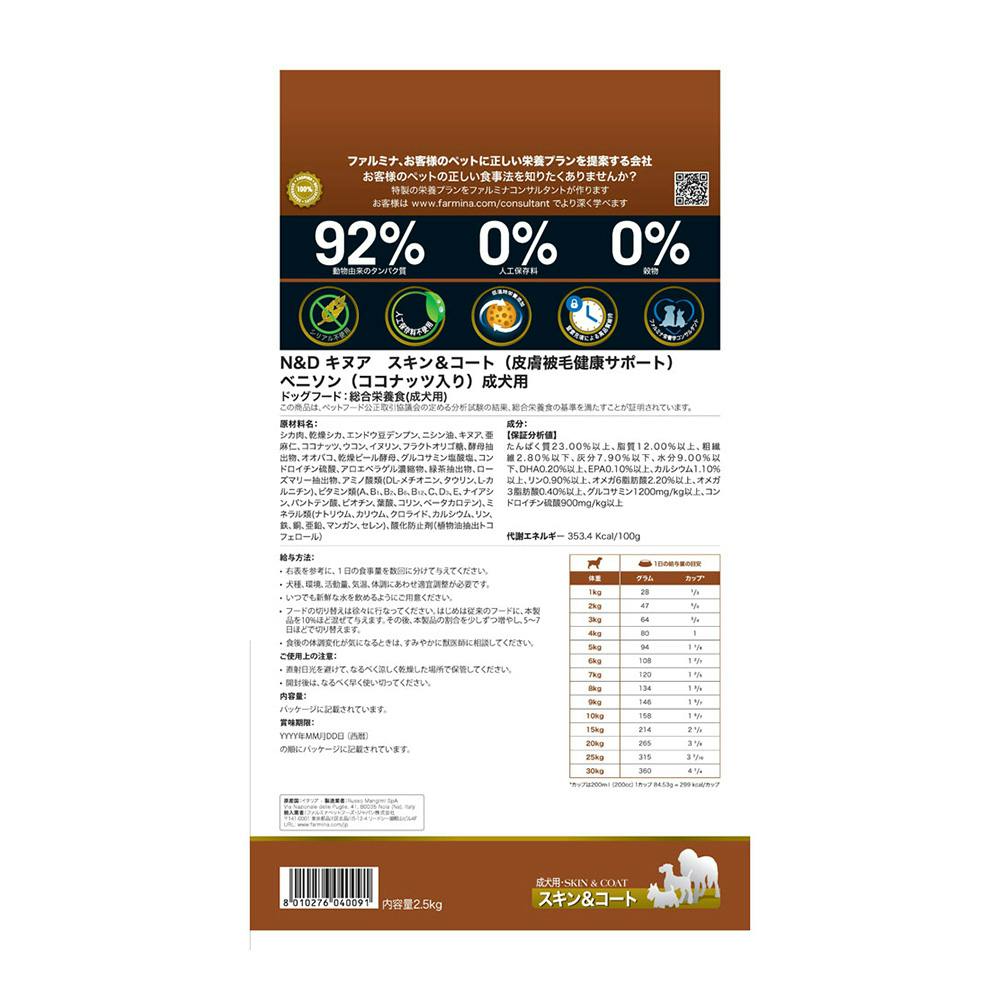 N&D キヌア スキン&コート(皮膚被毛健康サポート) ベニソン成犬用 2.5kg