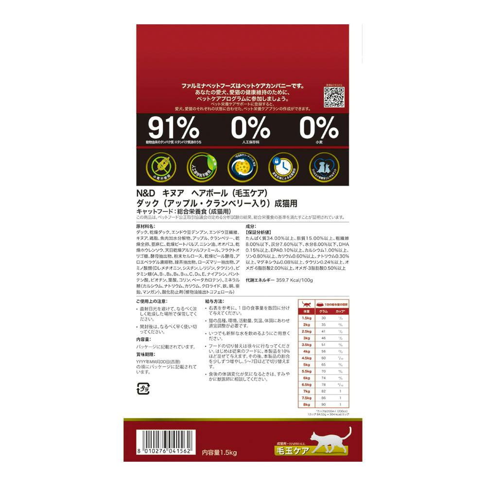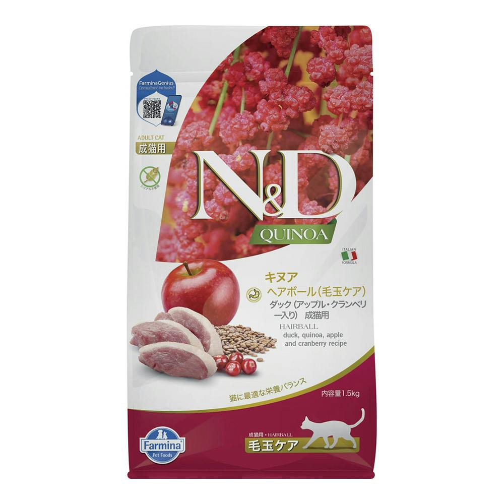 N&D キヌア ヘアボール(毛玉ケア) ダック 成猫用 1.5kg