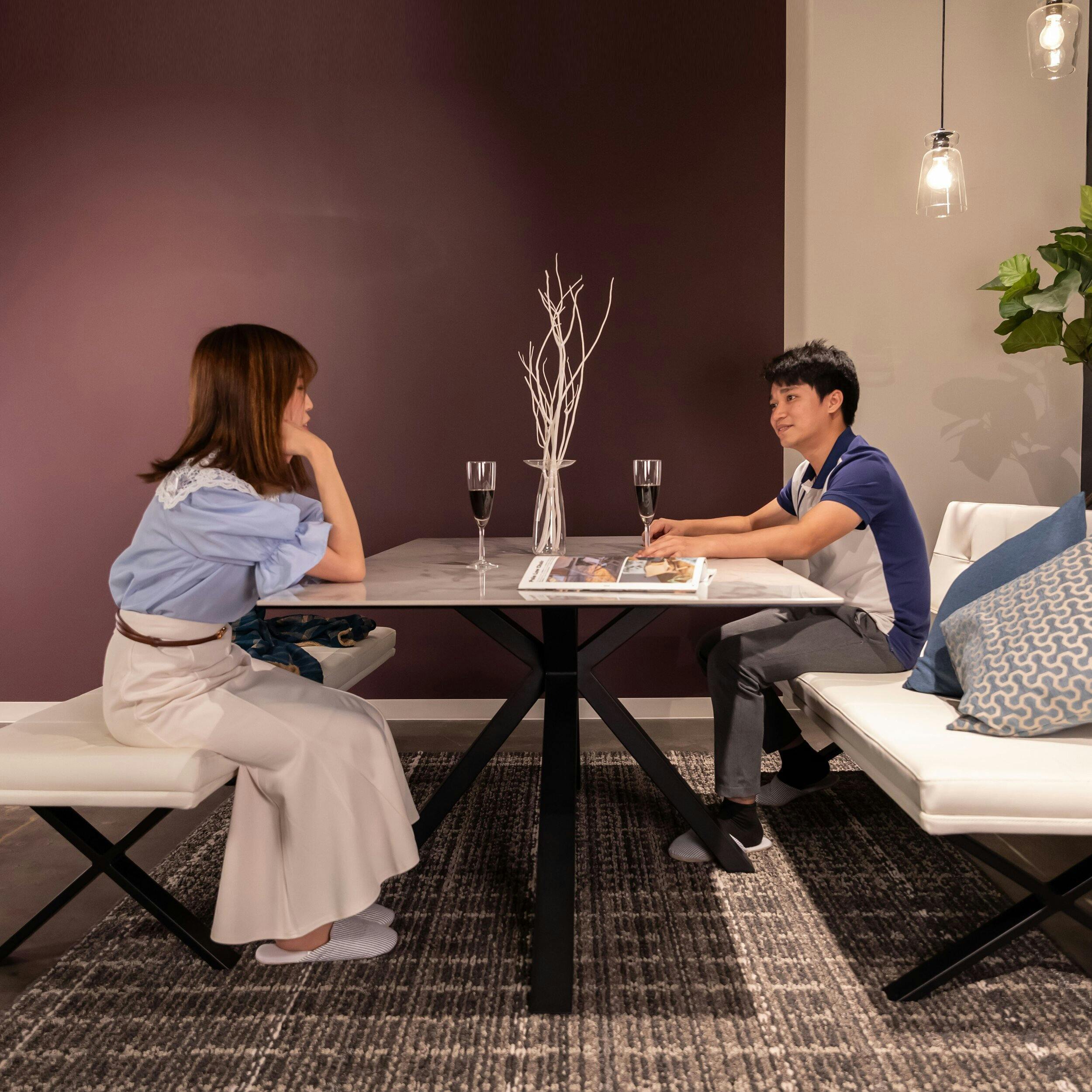 モダンで落ち着いた色合いのPVC張り込みダイニングベンチです。座面から背面に丁寧に施されたステッチの仕上がりが美しく、細部までこだわった仕上げとなっております。座面奥行きを50センチとり、ゆったりとお座りいただけます。お手入れは水拭き、または中性洗剤にて簡単に、長くきれいにご使用できます。