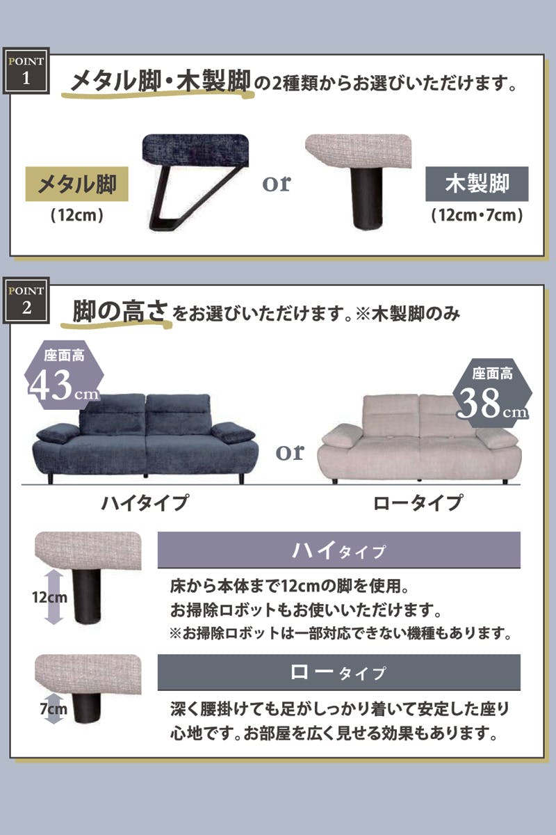 ●背もたれが可動式となっているため、通常時と使い分けができ、肘掛も角度調整が可能となっているため、ベットの代わりとしても使用が可能です。●また、カラーはNV、WHの2色から脚はメタル脚の12cm、木製脚の3タイプから選択ができます。