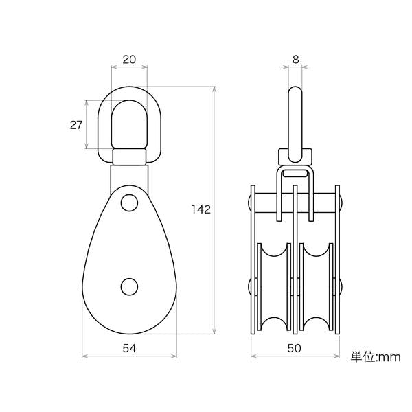 ハイロジック 11394 ステンレス 豆ブロック (2車) 50mm 1個入(CDC)【別送品】