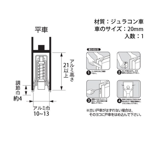 ハイロジック 17034 取替戸車 8D-F型(平)ジュラコン 1個入(CDC)【別送品】