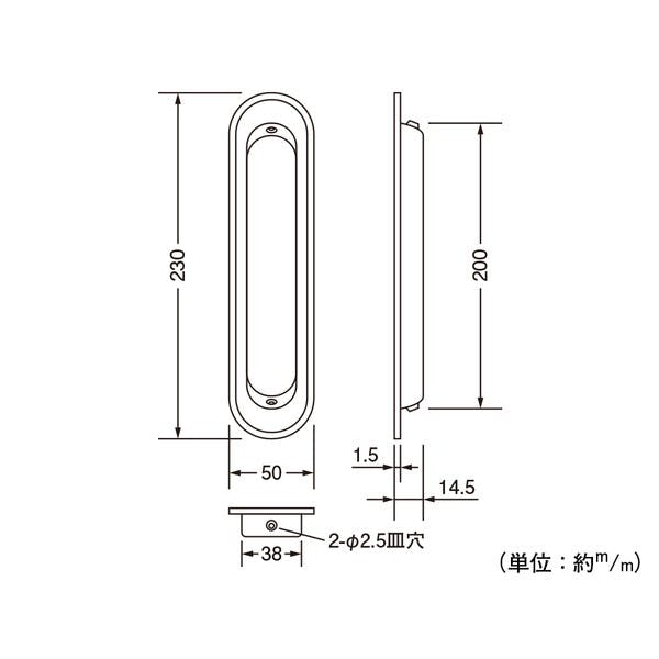 フスマの引手や戸襖の引手として掘り込み式サイズ:230x50x38x14.5x200mm