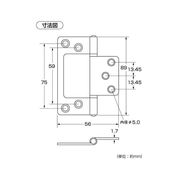 ハイロジック 17445 フラッシュ蝶番89mm ゴールド色 2枚入(CDC)【別送品】