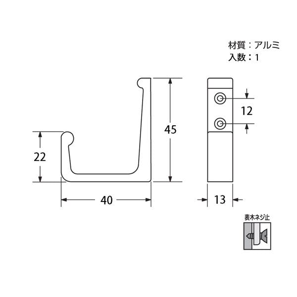 ハイロジック T-737 L型フック 45mm 白 1個入(CDC)【別送品】