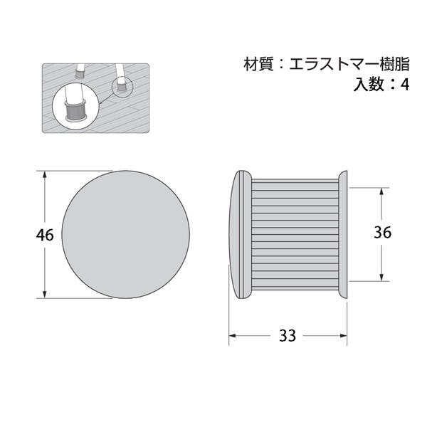 ハイロジック A-007 脚キャップ 36mm丸 茶 4個入(CDC)【別送品】