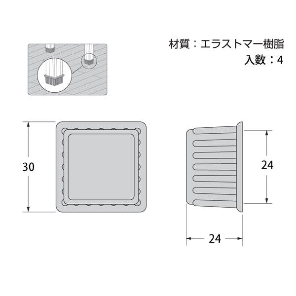ハイロジック A-075 脚キャップ 24mm角 黒 4個入(CDC)【別送品】