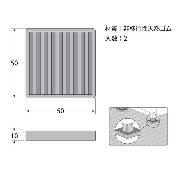 ハイロジック A-252 非移行性防振ゴム50角 黒 2個入(CDC)【別送品】