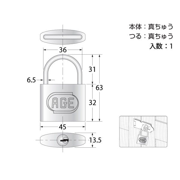 ハイロジック GY039 南京錠45mm 鍵番指定 3本キー(CDC)【別送品】