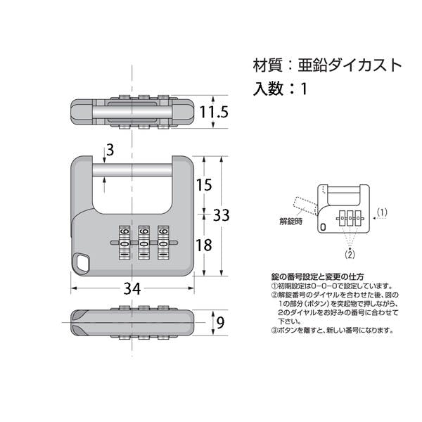 ●サイズ:34mm●番号可変式●カラー:ブラック●コード番号:00071077