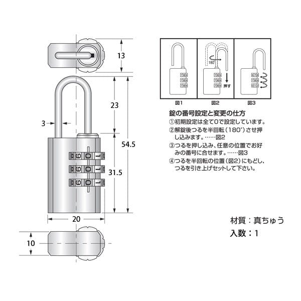 ハイロジック G-086 3段式文字合セ錠 1個入(CDC)【別送品】