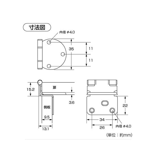 ハイロジック P-728 薄型アングル蝶番 16×15 AB色 2枚入(CDC)【別送品】