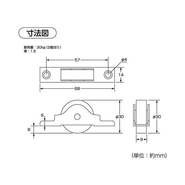 ハイロジック U-757 ステンレス戸車 30mm(平) 2個入(CDC)【別送品】